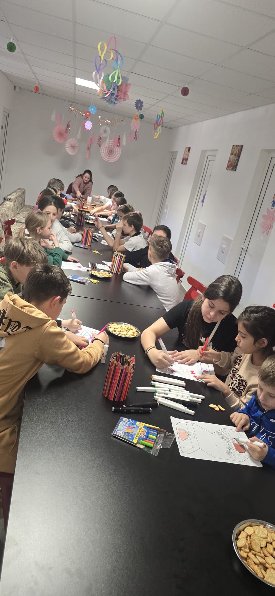 Împreună, copiii au lucrat cu mult entuziasm și imaginație, confecționând felicitări cu mesaje speciale pentru mămici.